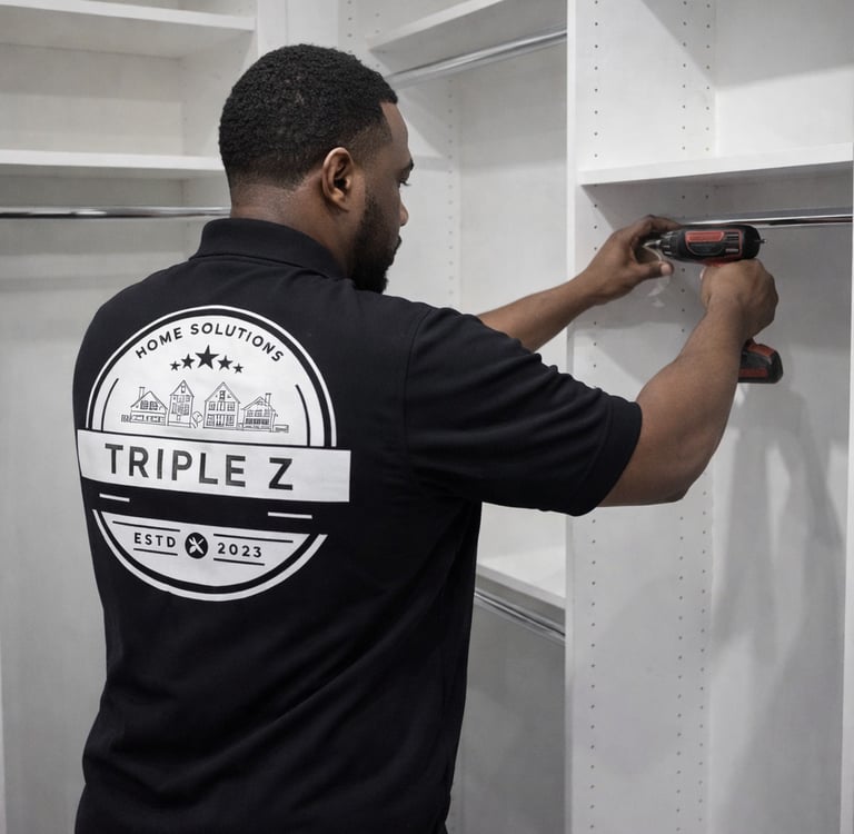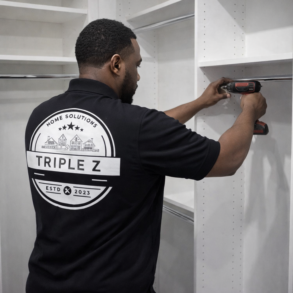Ready for a closet that's as organized as it is stylish? Triple Z's Walk-In Closet Setup service transforms your space into a storage dream, with custom shelving, hanging solutions, and thoughtful design. Say hello to effortless organization and a closet that makes finding your favorites a breeze!