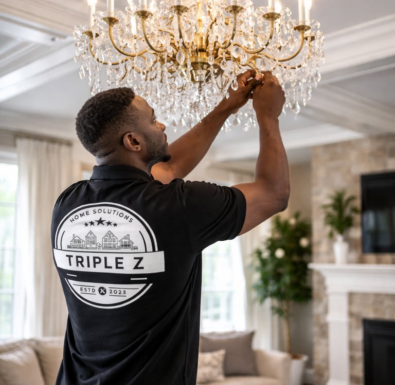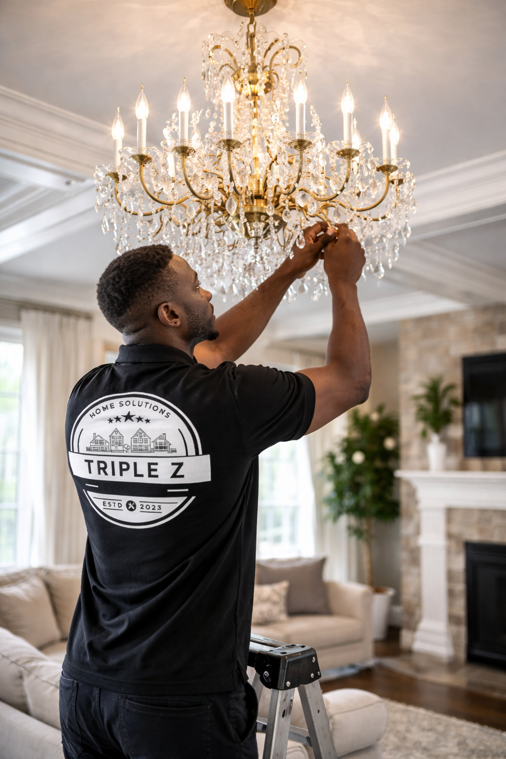Elevate your space with Triple Z's expert Chandelier Installation, adding a stunning focal point to any room. Our team handles secure mounting, precise positioning, and clean wiring for a flawless, polished look. Enjoy a beautifully lit home with safety and style in every detail!