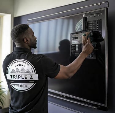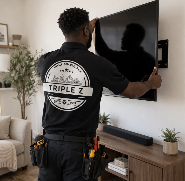 Triple Z's TV Mounting service offers a secure, sleek installation that enhances your viewing experience and maximizes space. Our experts carefully position and mount your TV, managing cables for a clean, modern look. Enjoy the perfect angle and stability with a setup tailored to your room!